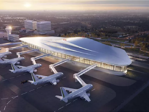 ከርሶአችን ቁልፍ ባህሪዎች ውስጥ አንዱ የግንባታ ውክልና ነው. ለቅድመ-ሞካሪ አፕል ክፈፍ ምስጋና ይግባቸው, የግንባታ ጊዜው በከፍተኛ ሁኔታ ቀንሷል, እርስዎም አውሮፕላን ማረፊያዎ እንዲይዙ እና አይሄዱም. በተጨማሪም, ተርሚናል ለተሳፋሪዎች ምቹ አካባቢ በሚኖርበት ጊዜ ኃይል ቆጣቢ ወጪዎችን ለመቀነስ የተዘጋጀ ነው.