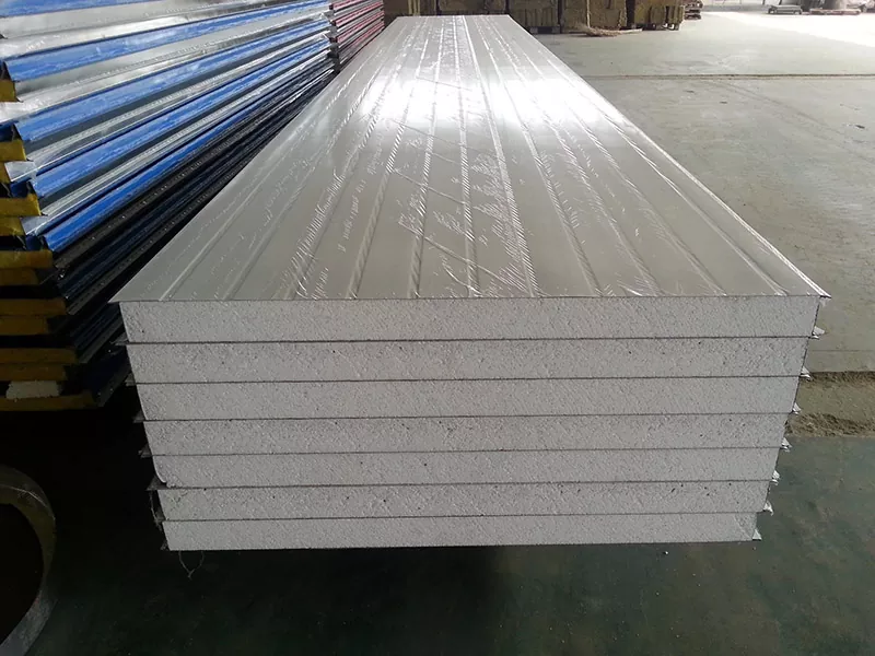 የEPS ሳንድዊች ፓነል ብዙውን ጊዜ ከብረት ወይም ከአሉሚኒየም የተሰሩ ሁለት ውጫዊ ንብርብሮችን ያቀፈ ሲሆን ይህም የኢፒኤስ ኮር ሳንድዊች ነው። የ EPS ኮር ልዩ የሙቀት መከላከያ ባህሪያትን ያቀርባል, በፓነል ውስጥ ያለውን የሙቀት ልውውጥ ይቀንሳል, የብረት ሽፋኖች ጥንካሬ እና ጥንካሬ ይሰጣሉ.